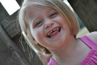Now this is a real laugh. I love the gap between her front teeth and the way she sticks her tongue to the front of her mouth when she laughs hard. I hope I always remember the way these laughs sound.